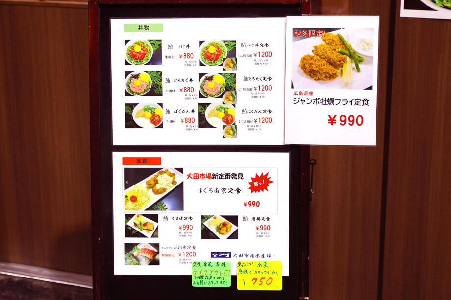 一番人気のメニューは、名物の「マグロの漬け丼」。ミニ唐揚げとセットになった「漬け丼定食」も評判です。揚げたマグロに自家製タルタルをかけた「南蛮定食」は、新たな定番メニューになりそうな予感!